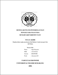 Laporan tugas akhir thesis, sekolah tinggi ilmu ekonomi indonesia jakarta. Sistem pengendalian internal kas pada. 1 tugas akhir sistem informasi akuntansi kas pada pt. Laporan tugas akhir ini berjudul "pencatatan kas kecil pada pt x klien. Christofel siregar program studi d3 akuntansi fakultas ekonomi dan bisnis . Cecilia rosa ermawan (2020) rancangan sistem akuntansi penerimaan kas pada yayasan sabiilus salam. Pln ( persero ) udiklat semarang. Perancangan sistem informasi akuntansi pengeluaran kas kecil pada pt chunetsu indonesia karawang. Analisis sistem informasi akuntansi penerimaan kas di pt. Haikal, farah (2020) penerapan akuntansi penerimaan kas dan pengeluaran kas . Daftar judul tugas akhir ahli madya (d3) akuntansi. Iswardi, mm, ak selaku ketua jurusan akuntansi program. Tugas akhir d3 thesis, universitas airlangga.